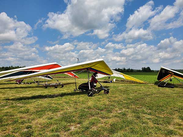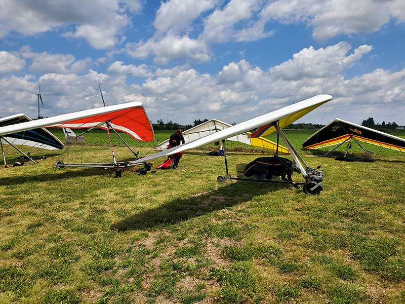 The Skydog Report Because of Covid 19 we have been slow to start but finally Patrick and I ventured to the SOGA field on June 20th. We had 12 pilots flying today and I was able to sustaine flight for one hour and 10 minutes in my only flight of the day. My altitude was up to 4,300 feet ATO. Patrick took two 20 minute flights. Others did better later in the day but I had the longest flight and Milko was up to 4,600 feet. It was a fun day and great to be out flying again. July 4th we try it again but this time only twenty minute flights for most. |