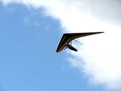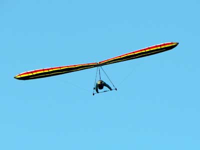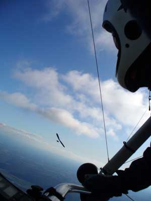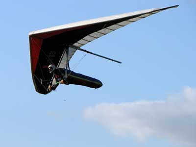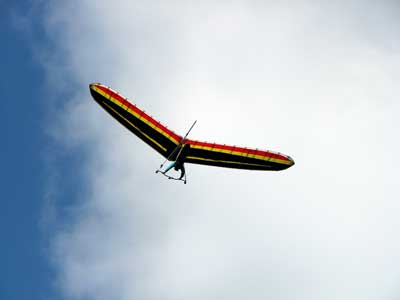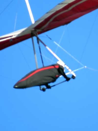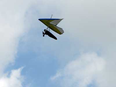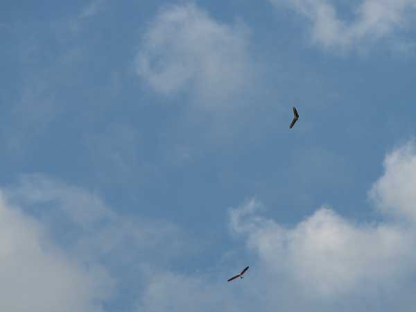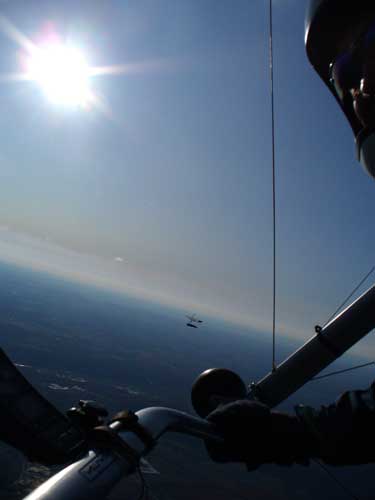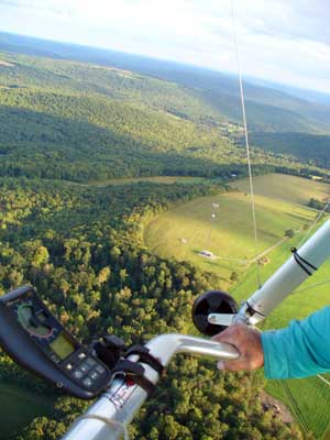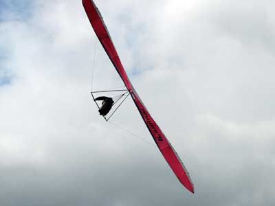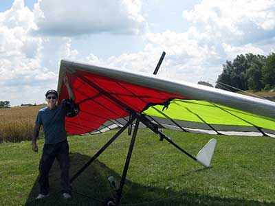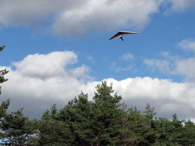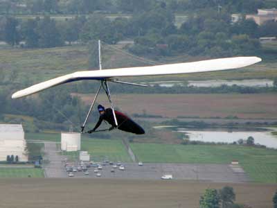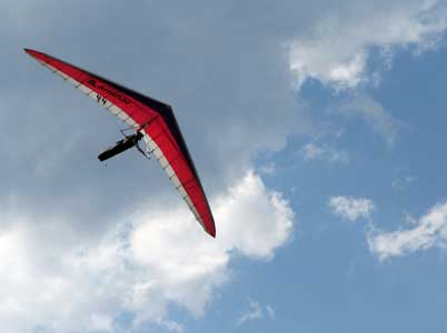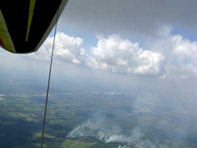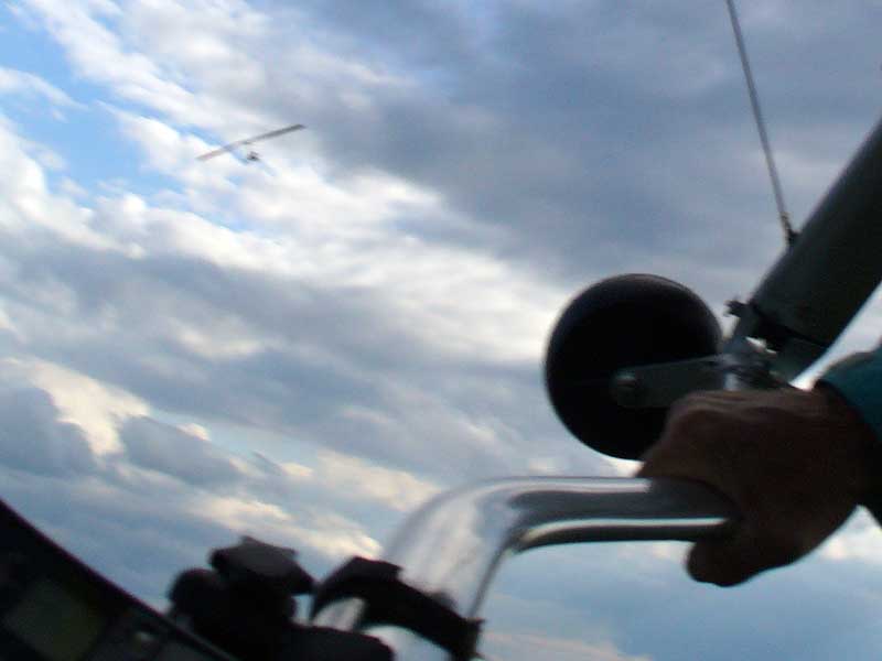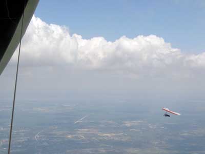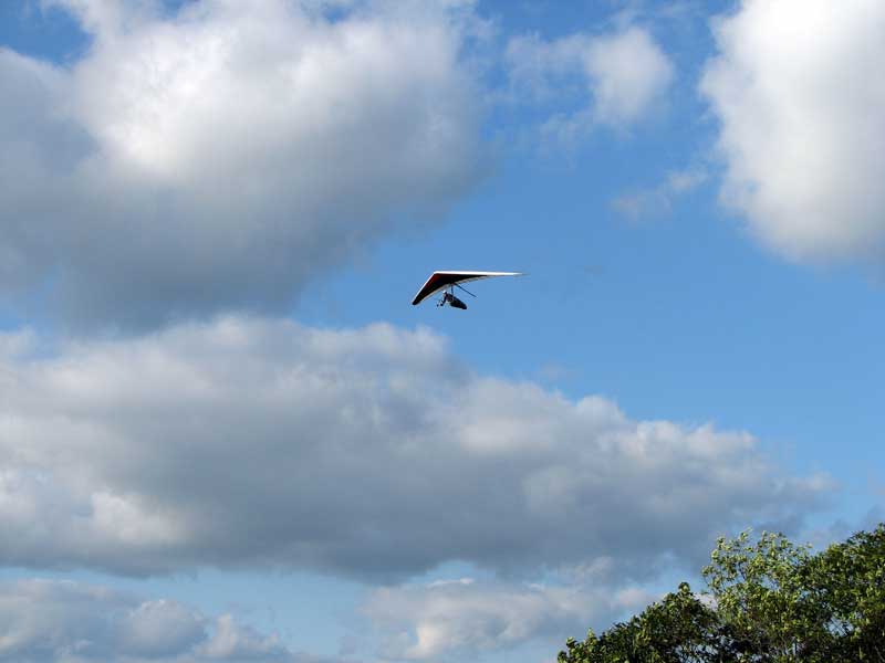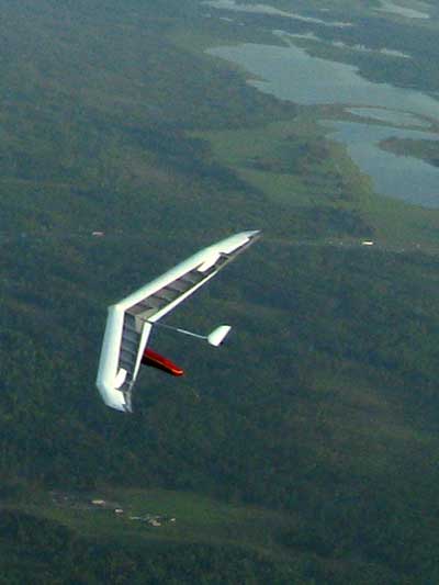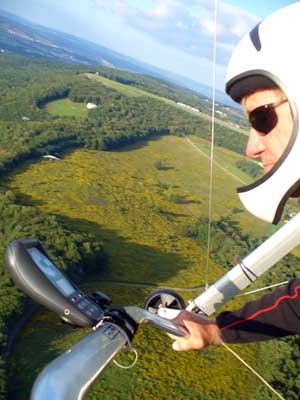 My First Great Hang Gliding Flight at Cloud 9 Michigan 2009 As always we take a chance with the weather and although it may be a sunny day that does not necessarily mean that there will be lift in the way of thermals. Often when there are good thermals they will be marked by a sky full of cumulous clouds but on this Friday June 5, 2009 there was a beautiful blue sky with not a cloud to be found. I arrive at Cloud 9 field just east of Lansing at 1 pm and start to set up my glider and after about a half hour another pilot shows up and wants to join me in the sky hoping that there will be some lift. I am ready first and get in position to be towed by Tracy Tillman with his wonderful Dragonfly tow plane. The tow is bumpier than usual meaning that there will likely be lift and I take a tow to 2,300 feet where I hit a strong thermal and release the tow rope and start circling and find ample lift that gets me up to over 3,000 feet but then I notice that I have forgotten to zip up one of my batten pockets and the dive recovery batten is hanging out. The glider seems to be handling OK but I feel uneasy with it open like that so I land and close the zipper while Pat Winther gets towed up and starts to sky out. Next Lisa one of the owners of Cloud 9 is in line and ready so Tracy tows Lisa up and she also gains some altitude so I am anxiously waiting for my second tow and Tracy zooms down to pick me up and we are off. This time I take the full tow to 2,500 feet and find a nice thermal right away and drift with it to about 3,500 feet where Lisa and I fly close together in the same thermal and finally Lisa takes off and heads west about two miles to find something better and I stay with the first thermal and get up to 5,400 feet and Lisa comes back after about ten minutes but is about 50 feet below me. All this time Pat is of to the north about two miles sometimes doing well but then I see Pat down low and next thing I know he is up at 5,000feet again so it must be good over there to. After drifting back about four miles I decide to head back to over the launch field and when I get there I am down to 2,000 feet and in search mode and I do find another good one and it takes me back up to 6, 960 feet and I try to break 7,000 feet but never do. After a couple of hours I have been back up and down many times from 3,000 feet to over six grand and I see Lisa head in for a landing and all goes well. Next Pat joins me and he cant quite get up to me at 6,000 feet and finally I see Pat take of to the west and a half hour later I see him landing. Well at this point I figure that I need another twenty minutes to break Pats flight time of three hours so I hang on to all the lift I can find and finally it turns into another good one at 400 feet per minute climb to 6,600 feet and I am well past the 3-1/2 hour mark and find more lift at 5:30 which is unusual as the lift generally dies around 5 pm. I am having such a great flight that I stay up until 6:15 and come in for a nice landing so happy that this was a great day and the trip was well worth while. In all I logged four hours airtime and my best gain was from 1,500 feet up to 5,900 feet so I am a happy camper. Bob |