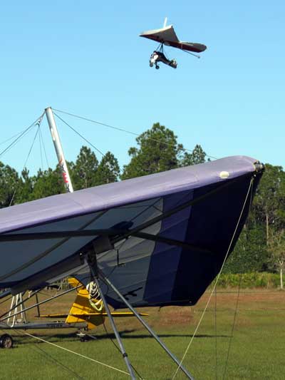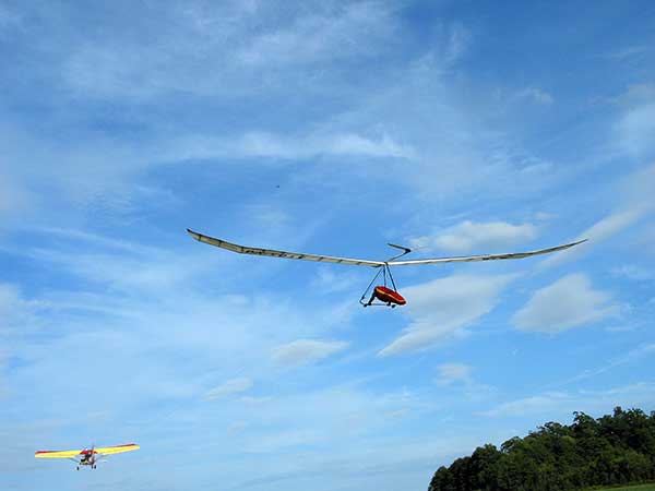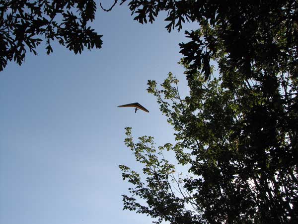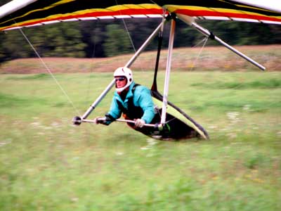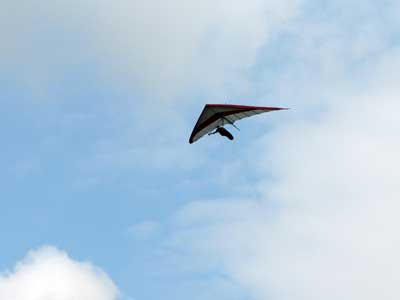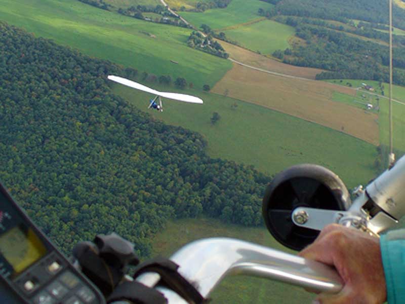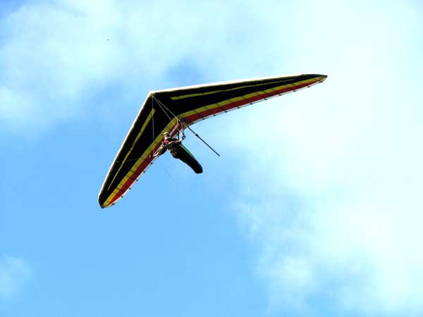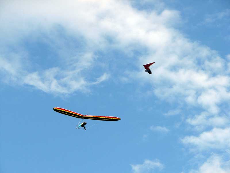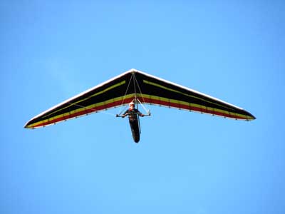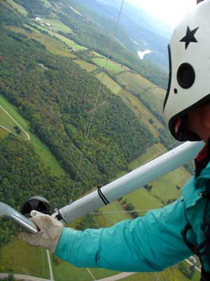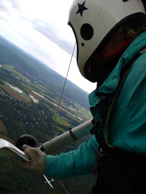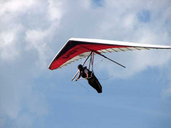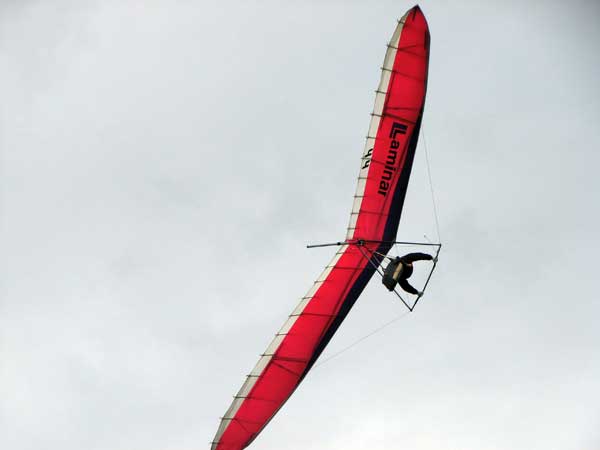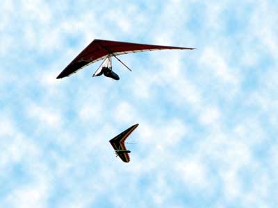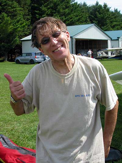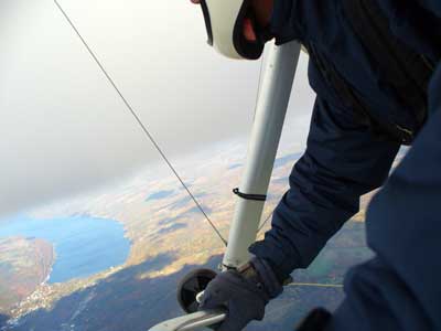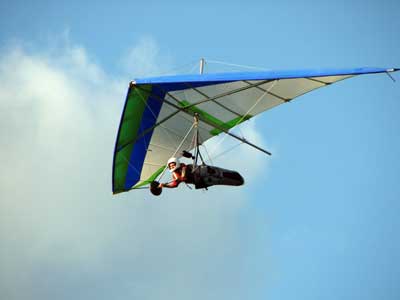 My First Great Hang Gliding Flight at Cloud 9 Michigan 2009 As always we take a chance with the weather and although it may be a sunny day that does not necessarily mean that there will be lift in the way of thermals. Often when there are good thermals they will be marked by a sky full of cumulous clouds but on this Friday June 5, 2009 there was a beautiful blue sky with not a cloud to be found. I arrive at Cloud 9 field just east of Lansing at 1 pm and start to set up my glider and after about a half hour another pilot shows up and wants to join me in the sky hoping that there will be some lift. I am ready first and get in position to be towed by Tracy Tillman with his wonderful Dragonfly tow plane. The tow is bumpier than usual meaning that there will likely be lift and I take a tow to 2,300 feet where I hit a strong thermal and release the tow rope and start circling and find ample lift that gets me up to over 3,000 feet but then I notice that I have forgotten to zip up one of my batten pockets and the dive recovery batten is hanging out. The glider seems to be handling OK but I feel uneasy with it open like that so I land and close the zipper while Pat Winther gets towed up and starts to sky out. Next Lisa one of the owners of Cloud 9 is in line and ready so Tracy tows Lisa up and she also gains some altitude so I am anxiously waiting for my second tow and Tracy zooms down to pick me up and we are off. This time I take the full tow to 2,500 feet and find a nice thermal right away and drift with it to about 3,500 feet where Lisa and I fly close together in the same thermal and finally Lisa takes off and heads west about two miles to find something better and I stay with the first thermal and get up to 5,400 feet and Lisa comes back after about ten minutes but is about 50 feet below me. All this time Pat is of to the north about two miles sometimes doing well but then I see Pat down low and next thing I know he is up at 5,000feet again so it must be good over there to. After drifting back about four miles I decide to head back to over the launch field and when I get there I am down to 2,000 feet and in search mode and I do find another good one and it takes me back up to 6, 960 feet and I try to break 7,000 feet but never do. After a couple of hours I have been back up and down many times from 3,000 feet to over six grand and I see Lisa head in for a landing and all goes well. Next Pat joins me and he cant quite get up to me at 6,000 feet and finally I see Pat take of to the west and a half hour later I see him landing. Well at this point I figure that I need another twenty minutes to break Pats flight time of three hours so I hang on to all the lift I can find and finally it turns into another good one at 400 feet per minute climb to 6,600 feet and I am well past the 3-1/2 hour mark and find more lift at 5:30 which is unusual as the lift generally dies around 5 pm. I am having such a great flight that I stay up until 6:15 and come in for a nice landing so happy that this was a great day and the trip was well worth while. In all I logged four hours airtime and my best gain was from 1,500 feet up to 5,900 feet so I am a happy camper. Bob |