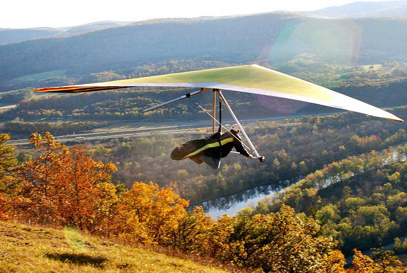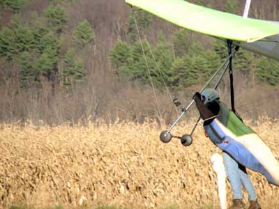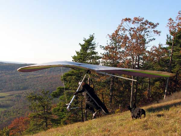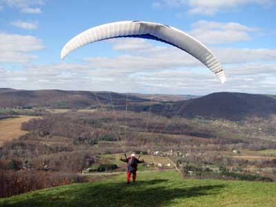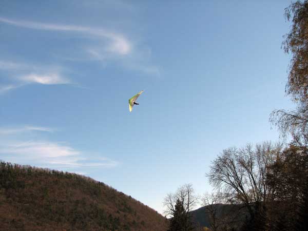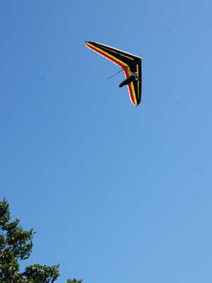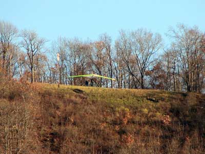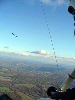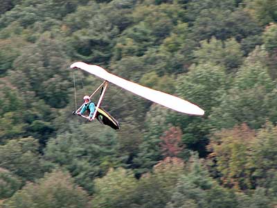 Sunday October 25, 2009 Another sunny Sunday and that's three in a row but this time the hang gliders did not stay up so well and the paragliders had some great flights. Katrin Parsiegla had the most spectacular flight at Hammondsport hitting a thermal below launch and zooming up to over 2,000 feet and then pulling Big Ears on to get back down and top landed. The wind had been very switching and most of us HG's did not get off and at 2:30 pm many went to Mossy Banks and there again the Paras took to the sky and they were getting about 300 ATO and I decided not to try it as it was getting late and I did not have a driver. |