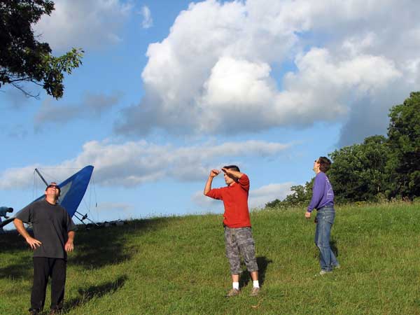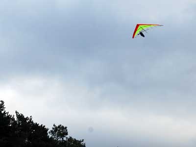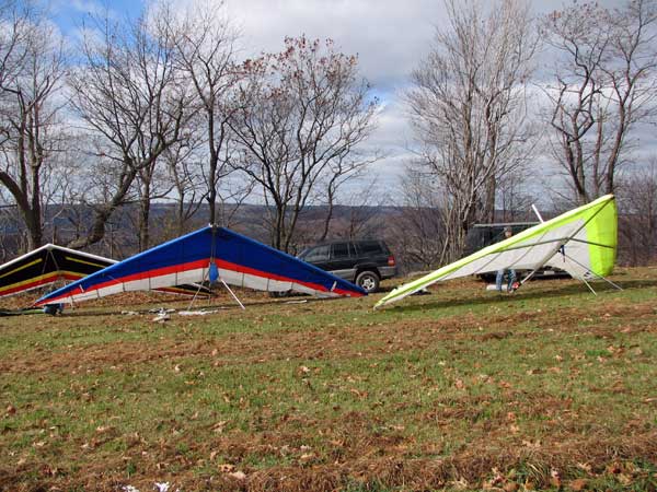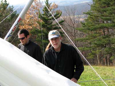 Friday November 6, 2009 we tried a promising forecast of sunny and 12 mph WNW and forty degrees. As it turned out when I arrived at 11 am there was complete cloud cover and the wind was straight in at 12 mph so I set up and waited for the locals who showed up at 12:30 Ed and John set up and by the time they were ready the sun had broken though and the wind had all but died. How disappointing. We took our sled runs and enjoyed everyone's company. We will try again soon I hope. |