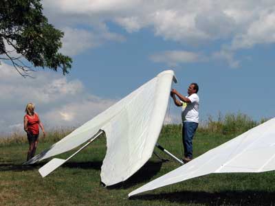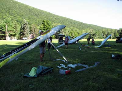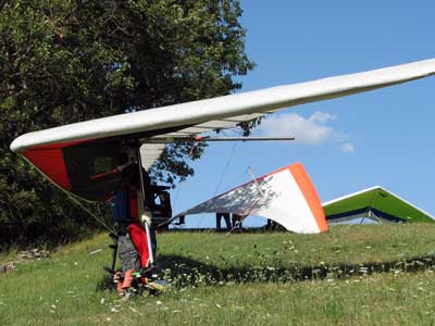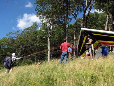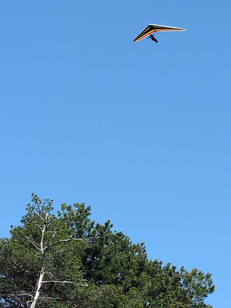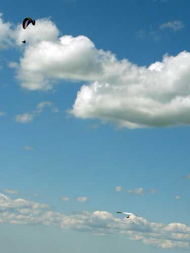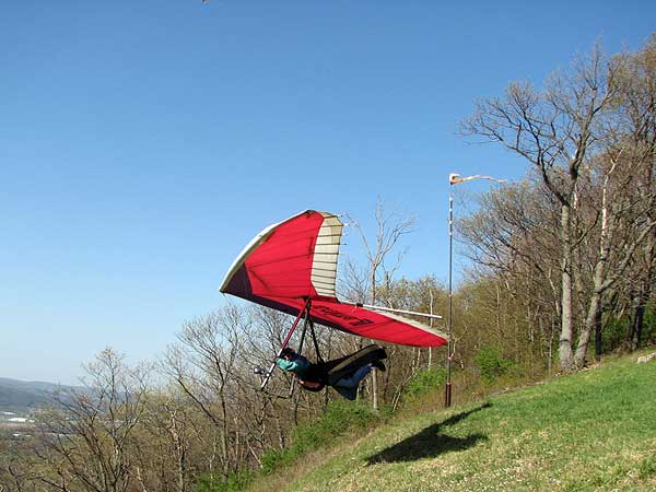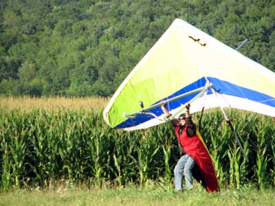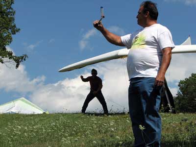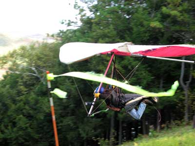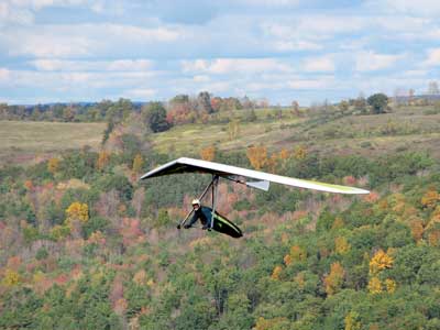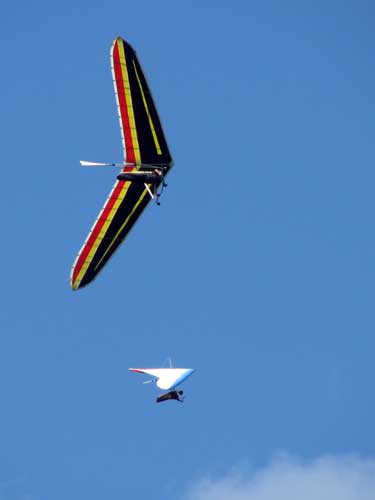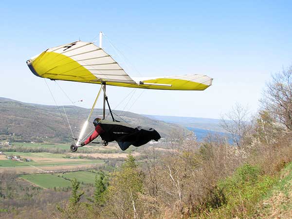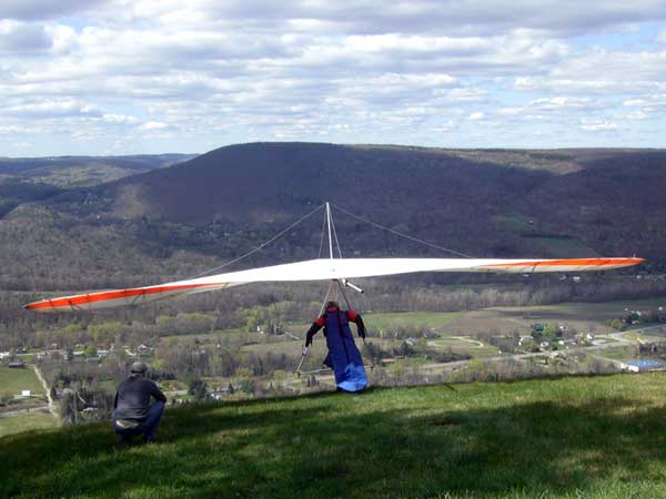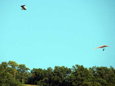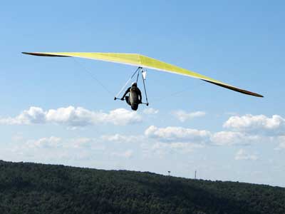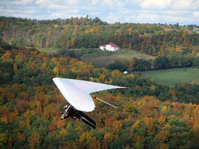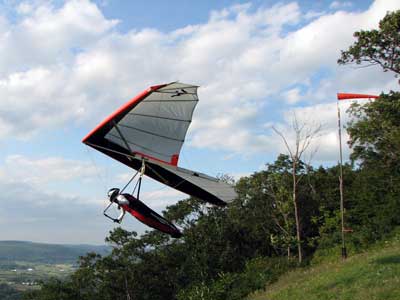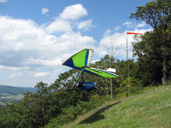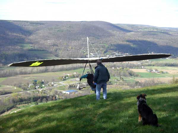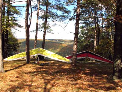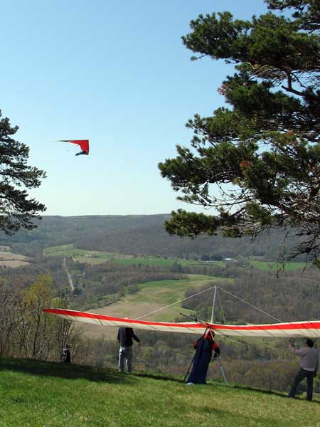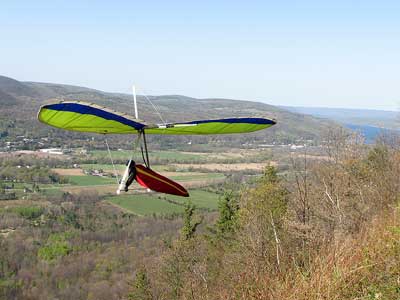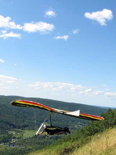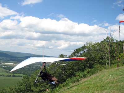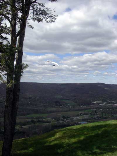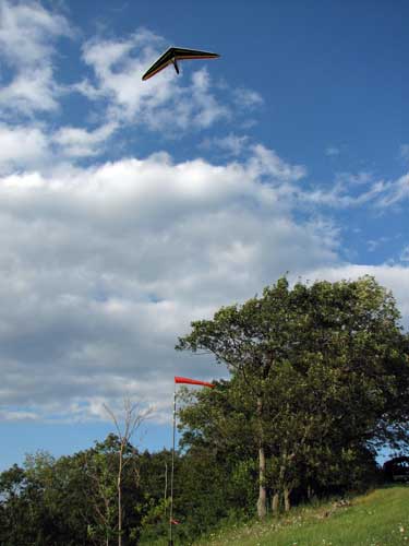 New York June 13 - 18, 2010 Our trip started on Sunday the 13th and we stayed until Friday at 3 pm. Arriving late Sunday, Monday dawned cloudy so we did the hiking thing and Maureen and Eric started painting the cabin on top of H-Port. Tuesday dawned bright and sunny so we headed to Indian cliffs with Patrick and although it was a beautiful day there was no lift to be found but Patrick and a few others took sledders. Wednesday was another cloudy day and hiking we did go and biking later at Penn Yan. Thursday started cloudy but the forecast was for partly sunny later in the day so Patrick set up at H-Port and flew the straight in 10 mph breeze and soared for an hour. Around 3 pm I took off and along with Patrick soared the thermals eventually getting up to 5,400 feet. I stayed up for 3 hours and 15 minutes and should have stayed up longer but in one flush cycle I decided to land on top rather than go to the bottom. Oded Kalir and Scott Wise took off at about six pm and had nice soaring flights. It Turned out to be a wonderful day. Friday we went to Italy Valley to show Patrick the site and the wind was coming in OK but Patrick decided not to try it and I did not want to fly alone so we went home. |
