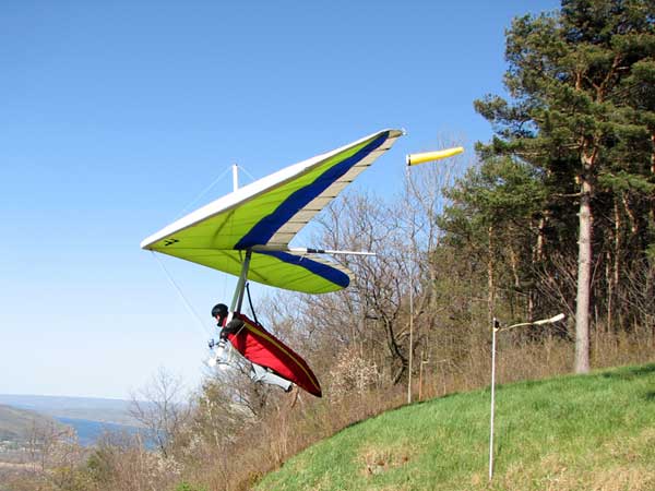 Five Days In the Finger Lakes We spent five sunny days in the Finger Lakes and had three soarable days in which I logged seven hours of airtime and my highest gain was 5,410 feet above take off at H-Port. We flew Harris Hill one day and that was a 3 hour and 40 minute flight for me and up to 3,100 feet ato. Lots of pilots were out even though they were all weekdays. I recorded my fastest gain ever of 2,200 feet per minute. Friday Patrick O'Donnell and Gilles Roussel from Ontario joined us and had great flights at Hammondsport, Spring flying was great. Monday April 19, 2010 |