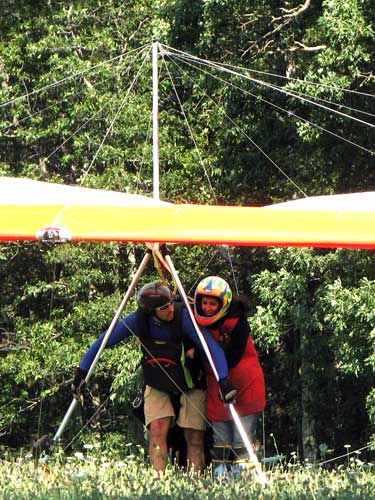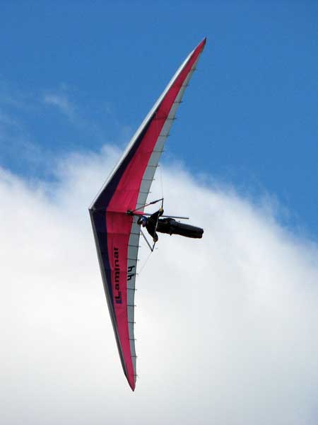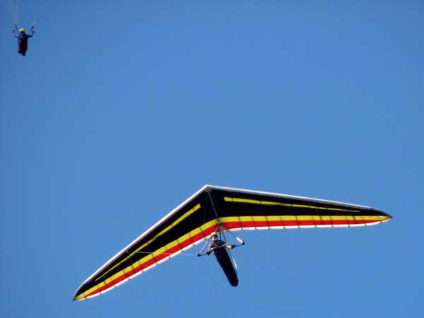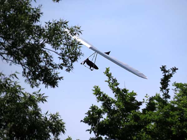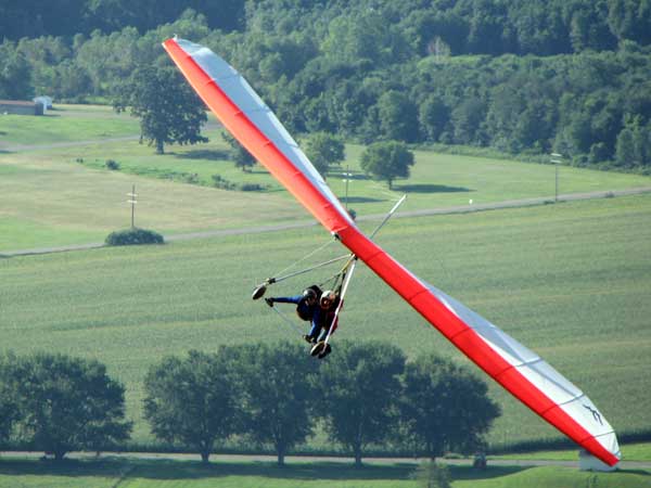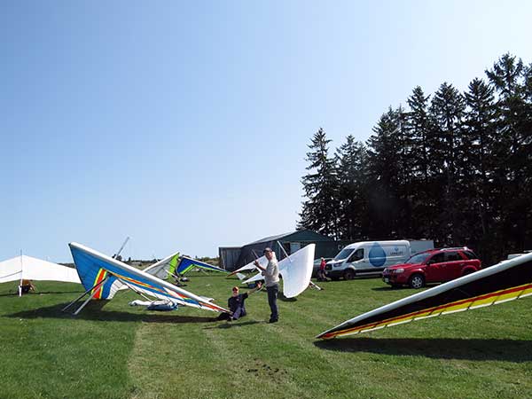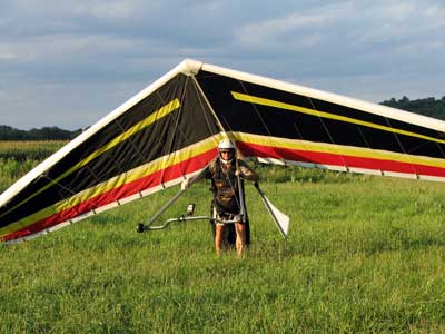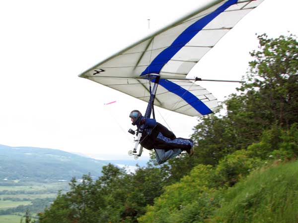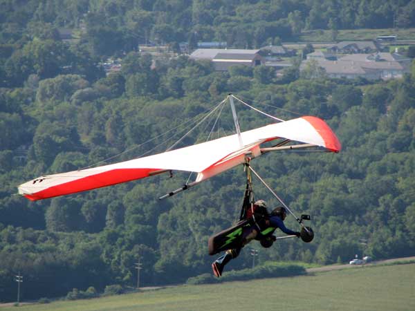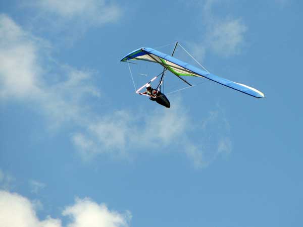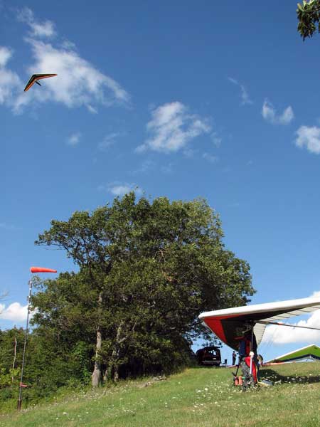 New York August 6, and 7, 2010 We drove to Hammondsport on Thursday evening arriving at 1 am Friday while Patrick, Gilles and Eugene were there on Tuesday and had some sledders except for Eugene who flew Gilles new U-2 for 40 minutes at Dansville. The wind forecast showed WNW so we headed to Harris Hill and arrived by 2 pm and Ed Jowett was setting up so we hurried and got ready. Ed took off first and skied out so I was next and I got good lift up to 3,555 feet and I endured for four hours and 32 minutes watching many others take off and land. The wind shifted from the north for a half hour but straightened out again so all was well in the air. Patrick, Gilles and Eugene had good flights too. Saturday we went to Bristol after a hike at Grimes Glen and when we arrived at Bristol Katrin and Karl were just about to head up to the launch so we followed and when we got to the parking area Karl and a friend offered to carry my glider into launch and I appreciate that so much. I would have had a hard time doing it with Maureen helping. The wind was cycling in and often from the left 20 degrees but Brian took off first and showed us that it was soarable so I got into the air with a bunch of paraglider pilots and Eugene and later Giles and Patrick joined us. I got up to 1,600 feet ato and stayed up for one hour and 13 minutes. Another good day. Checked out Dansville on Sunday and decided to head on home.