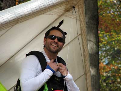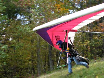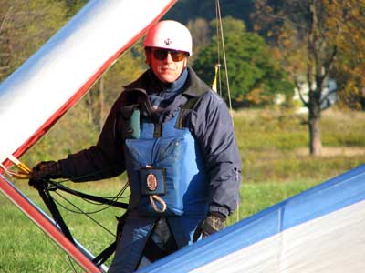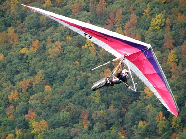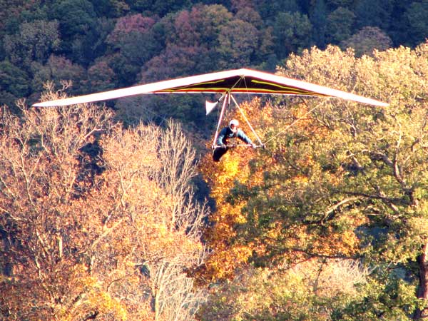 Skydog Report Indian Cliffs October 1, to 4, 2010 We drove Thursday evening and woke Friday morning to blue skies and strong NW winds so we hiked and hoped that the wind would slow down later in the day but no luck there as it was still blowing 15 to 20 mph at 6 pm at Hammondsport so we gave up and hoped for better air on Saturday and sure enough another sunny day and the wind was coming from the NE but light so we drove to Indian Cliffs and set up waiting for a good cycle and finally around three pm Florian took off with his paraglider and immediately climbed to over one thousand feet so we all got excited and ready to get off the cliffs. Bill Vickery and then Dan Walter took off and worked at getting up and then another three paragliders took of and slowly climbed out. Then it was my turn so I got on launch and watched the windsock slow down and then pick up a little so I ran off in what turned out to be the end of a great cycle and within seven minutes I was in the Landing area watching as all the others soared at cloudbase except for Ed Jowett who took off after me and survived for about fifteen minutes. A half hour later Scott Wise took off and got to about 1,000 feet above and stayed aloft for one hour and twelve minutes. All the pilots eventually landed telling me stories about how they could not get down and how smooth the air was near the clouds so I was feeling a lot left out but oh well there will be another day, I Hope. Sunday dawned sunny again and off to Indian cliffs I went again with Maureen, my wife and our friends, Eric and Mary. We arrived at Indian Cliffs take off to find Bill Vickery already mostly set up and the wind was blowing in pretty good and sometimes from the left at 20 degrees. I set up while Bill went down to get a helmet which he left at home and was able to borrow another from a store at the bottom. Florian and friends showed up with their paragliders and decided not to launch as the wind speed had picked up to about 15 mph on launch. I decided to go first when Florian assured me that I could stay up and sure enough my take - off was out and straight up to about six hundred feet. I cruised the ridge for a while and was happy to be airborne after my poor showing on Saturday. The wind speed seemed to be about twelve to sixteen mph above launch and for the first forty minutes I was considering going down for a landing as the air was very rasty (rough and nasty) but then I saw Bill take off so I thought that I would see how we would do together and I felt better having Bill up there and then Jamie McGuire came up to join us. I was watching the time and figured that the rough air would get better after three pm and the longer I waited the smoother it got. Bill, Jamie and myself thermalled together in the textured air and I got up to 3,700 feet in a good thermal and later Bill said that he got up to 4,100 feet ato. Ed Jowett and then Scott Wise joined me in the air and we all enjoyed some good thermals. Around five o'clock a wonder wind filled in and by moving out in front of the ridge about five hundred feet I found that I could sit at 1,300 feet and I watched as the others all landed and then I thought that I had better get down so that I could break down before dark. My flight time was four hours and twenty minutes and in the end I really enjoyed my flight. |