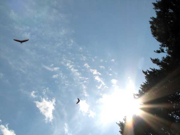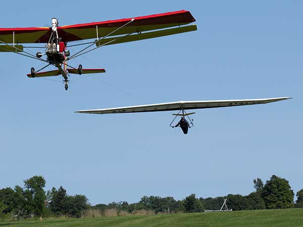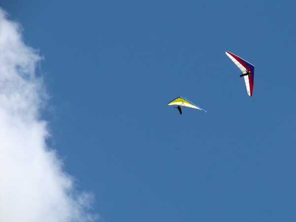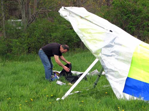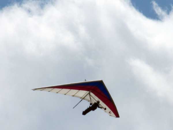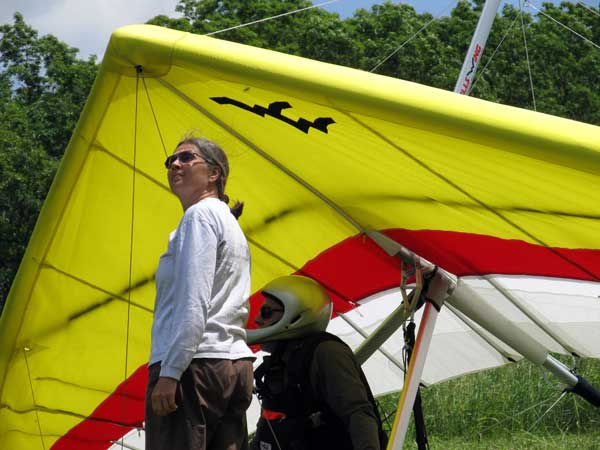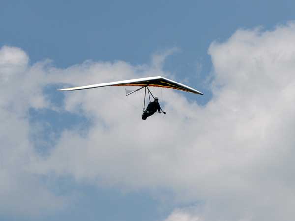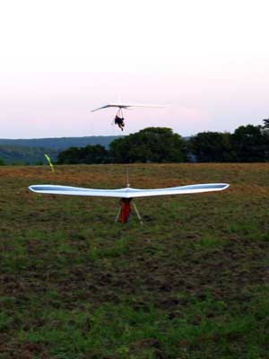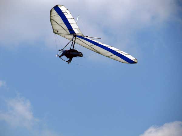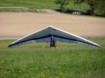 Skydog Report Hammondsport June 3 & 5, 2011 We drove Thursday evening and woke to blue skies Friday morning with the wind coming straight in and soarable by 10am so we waited until noon when Patrick arrived and Bill Vickery came in and Bill set up and flew at 1pm and soared for two hours. We lost sight of Bill for a long time as he must have been plenty high and hiding in the clouds. With the wind being 18 gusting to 22 mph I waited until 5 pm and took off for a two hour flight and Patrick followed with a one hour flight. Saturday started out cloudy and it rained by noon and cleared again around 5 and we waited for Sunday which had a great forecast. Sunday morning dawned sunny again and the wind was coming in again. I took off around 1 pm for a two hour flight landing on top and waited for the strong stuff to pass and I flew again at 5 pm for a three and one half hour flight. There were eight pilots flying Sunday and we all had a great time. The very special part of my last flight was the wonder wind that started around six thirty and I was able to get up to 2,900 feet above take-off for almost two hours travelling north over Kueka lake and back only loosing 300 feet and then gaining again. This was one of the most pleasant flights of my life. |