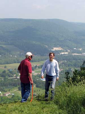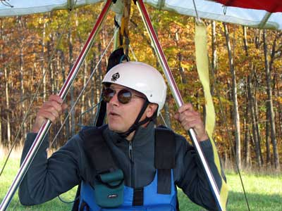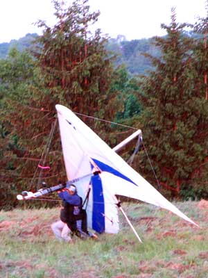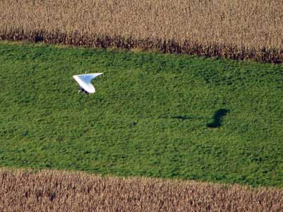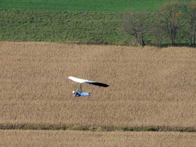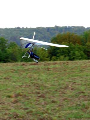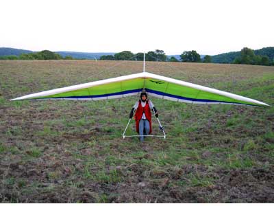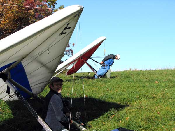 Skydog Report Katie-did October 23, 2011 Our First NY Adventure since June 5, 2011 - "A long Dry Spell" We drove Friday evening and arrived at 2 am Saturday morning and woke up to a cloudy day that the forecast had predicted to be sunny so we checked out Harris hill and found not enough lift on the ridge to be worth setting up. We went to a movie at the mall and Maureen, Patrick and I headed back to Bath for pizza with Scott Wise. Sunday dawned sunny and the wind is forecast to be wsw so we head to Katie-did with Scott. When we arrived and asked permission the owner said the road to the top was bad so we gave it a go but it was too bad with large ruts from the heavy rains of late so we walked to the top just to show Patrick the nice launch. When we got to the top the sock was coming straight in and straight out at ten mph but the walk was to hard for us to carry our gliders up so we took a few photos and headed down and drove to Harris hill to see if we could get a flight there. On arrival at Harris the sock was coming in 30 degrees from the left but luffing at 2- 10 mph. Patrick and Scott set up and took sledders. Patrick hit a thermal but felt that he was to close to the ridge to turn in it. I expect that Patrick could have got above take off for a few minutes if he could have used the thermal. they both had good landings and we headed home. |