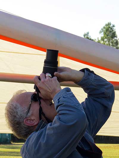 Maureen looks through a nice hole in that old 6.0 sail |