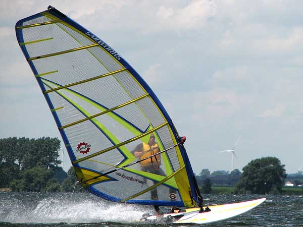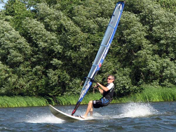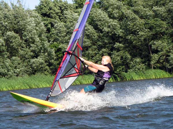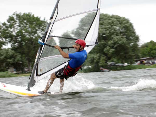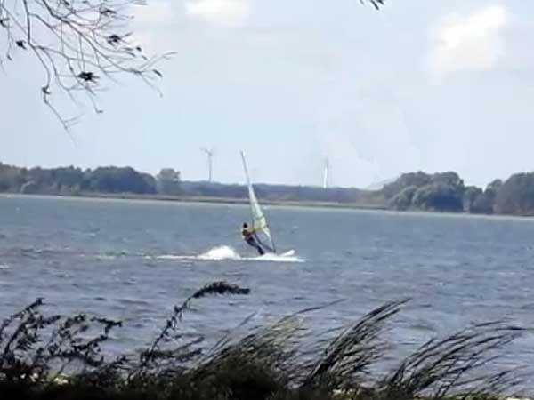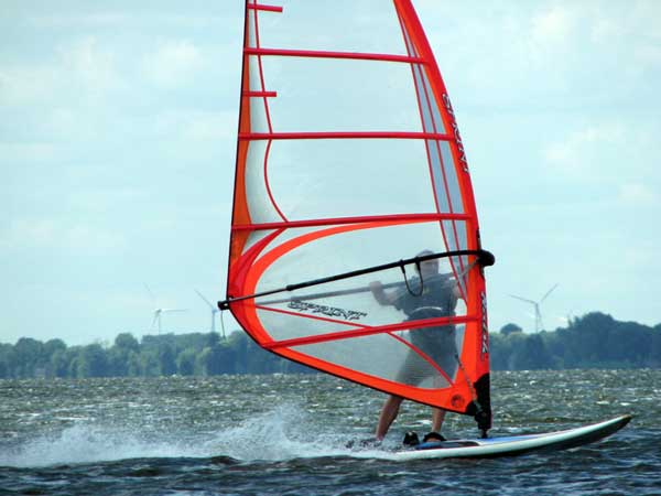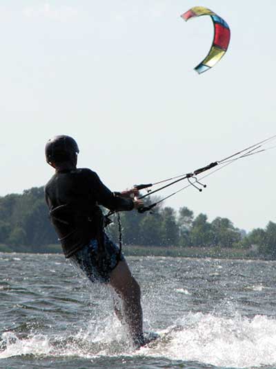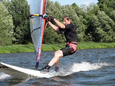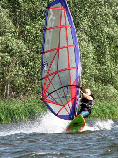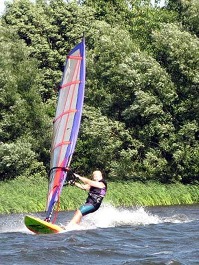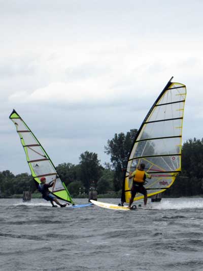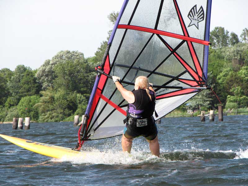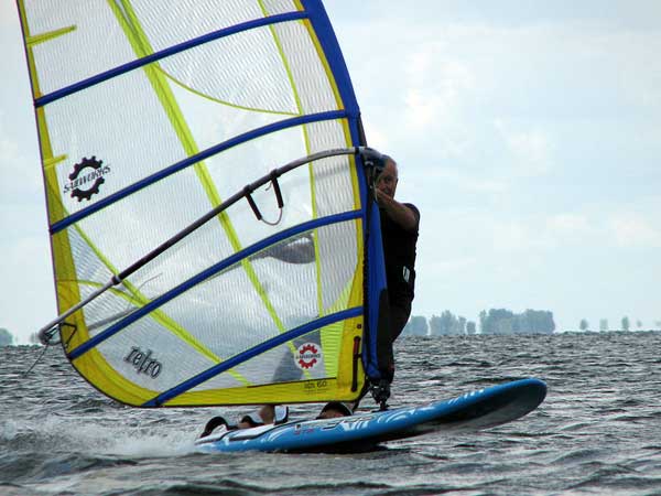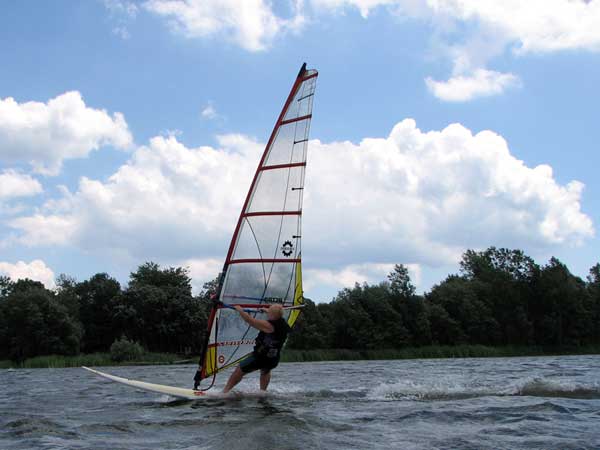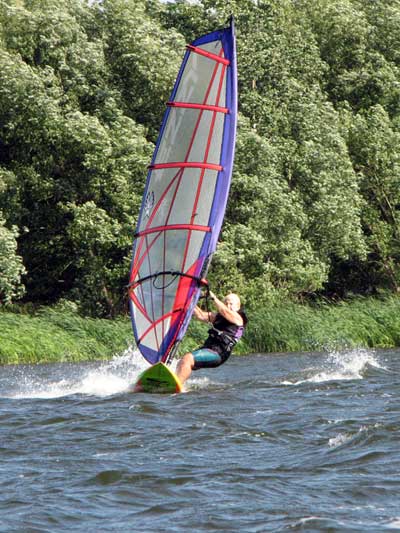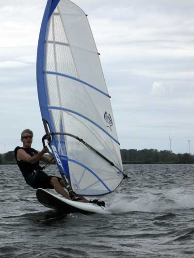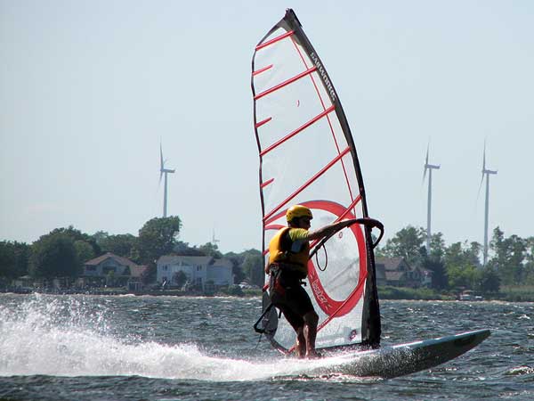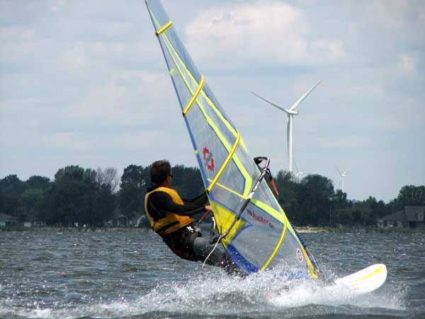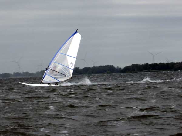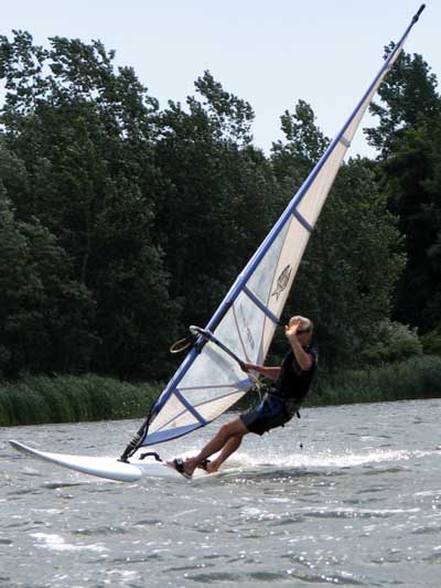 The Skydog Report Tuesday July 1, 2014 Maureen and I went to Rondeau Bay for some good sailing. The forecast was for southwest winds 19 mph gusting to 29 mph so we were hyped. I had been at Rondeau a few weeks earlier and had a few good runs and after 2 hours I was beat. Today was Maureen's first time in a couple of years and she was apprehensive but persevered and got some good practice in. Les Squires, Don and Annabelle Ferguson and others were also enjoying the great winds which finally built up to 30 mph. I took my last run at 6 pm and it was full tilt on my 6.3 Ezzy sail. |