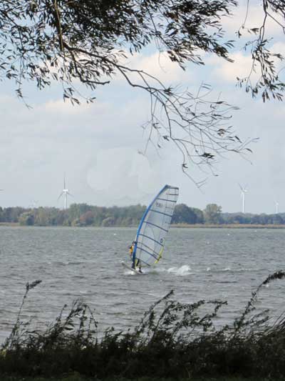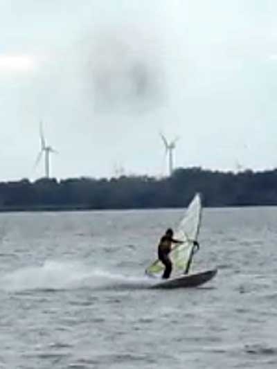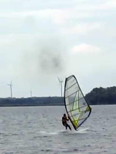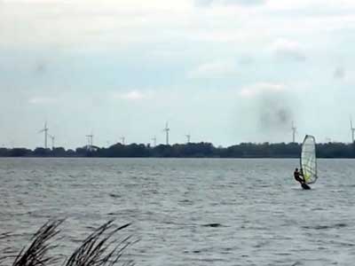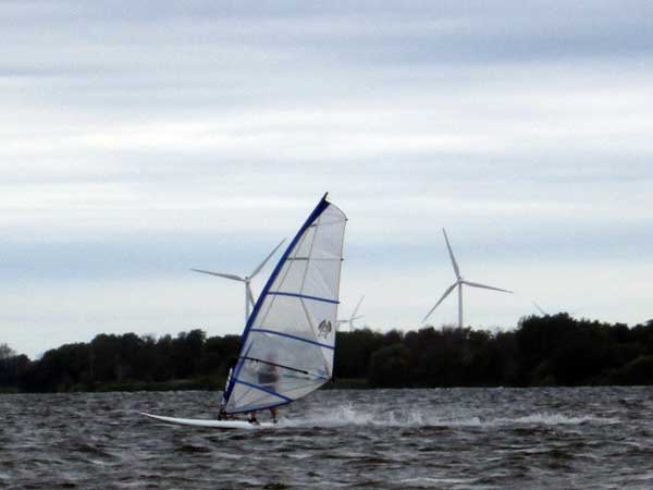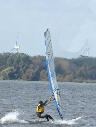 The Don Ferguson Report October 7, 2014 I got to Rondeau around 9:30 looking quite windy so I rigged 6.0 and ventured out for a great well powered hour long session but it seemed to be backing as 11 o clock approached so I came in for a bite to eat after which it seemed to back off even further to the point where even a 7.5 wouldn't help me so I contemplated packing up but noticed the windmills all around at a 4 second revolution, and I thought it must have domed or it just isn't down here yet. By twelve noon it appeared to be coming back in so I wondered back out hoping to have enough to at least plane out on my 6.0 but to my surprise I started planning up immediately and it just continued to get stronger and stronger until I began to fear I would have to go in and re rig but I held on for about an other 15 min and then it began backing again. By the time I came in and looked back over the water it had almost totally died again. So again another well powered hour session making the trip worthwhile. Time to call it a day and home to hot tub and cocktails!! Tomorrow it is supposed to blow West there and even stronger wind cast than today at least at the moment!