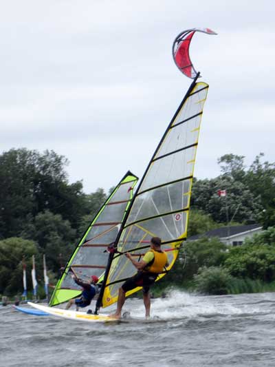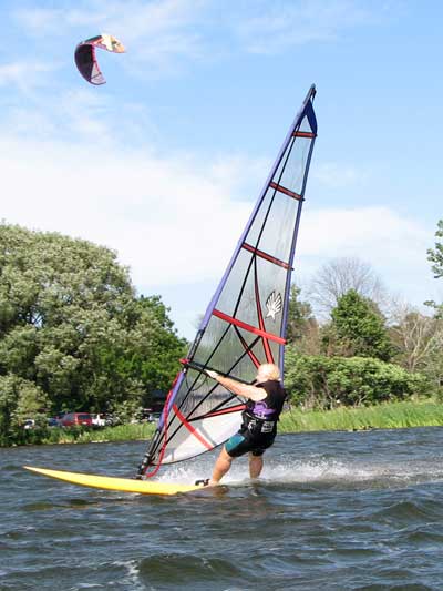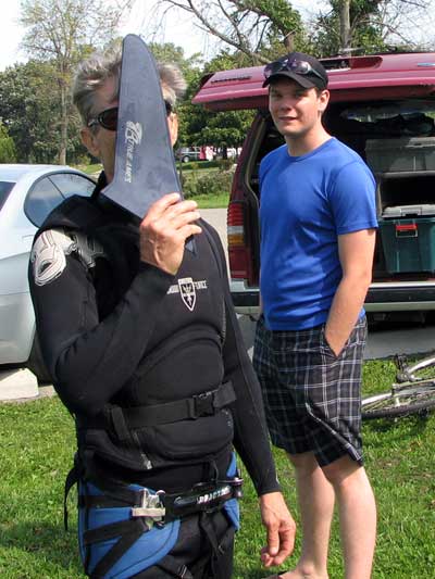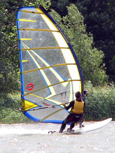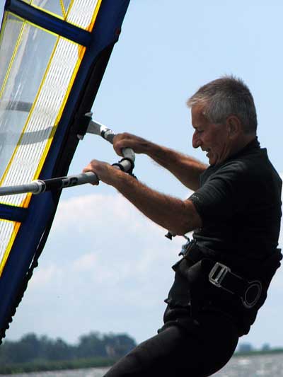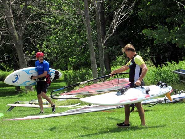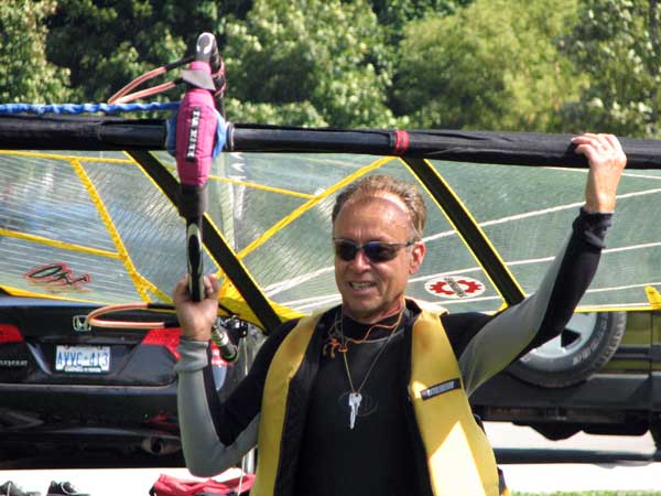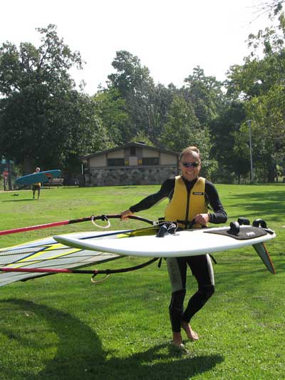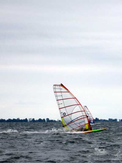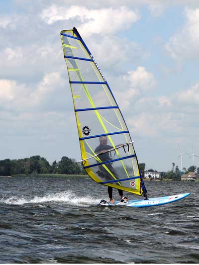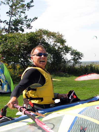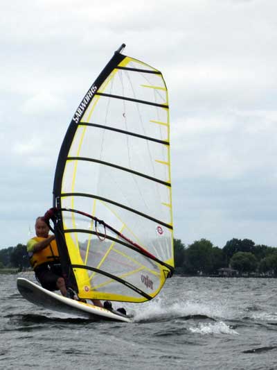 The Skydog Report Friday September 5, 2014 Maureen and I went to Rondeau Bay again. The forecast was for winds 16 to 24 mph and we were excited to get sailing again. Les and Don and all the regulars were there and Don was out on his 6.5 sail at 10 am. We set up our 6.0 and 6.3 sails and got onto the water by 11 am. I took a ride across the bay and Maureen stayed in close getting more secure on her Angulo board. Don let us try the Big Bic board and Maureen did well on it. We stopped for lunch and after that Maureen took a spin across the bay on her 9 foot Angulo that is likely twenty five years old now and we had a good run together although it was hard to water start on the far side but we finally got back. Maureen needs a 120 litre board to get her going better and we are looking into that, likely for next spring. We all had a good day of sailing. Checking with Les Squires, who keeps a log of days sailed, it looks like Maureen has been to Rondeau six times this year and I have been there nine times. One of those days was not worth going but the others worked out well. Les has been out eighteen times so far in 2014 at three locations. |