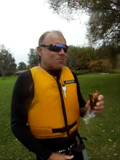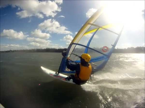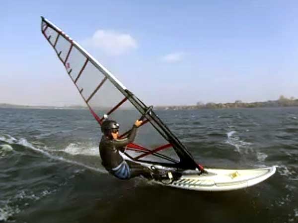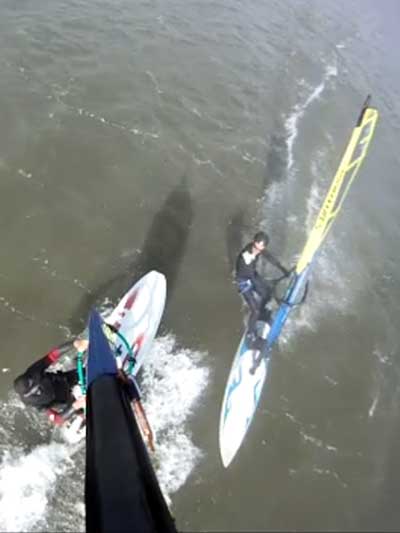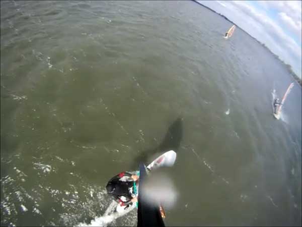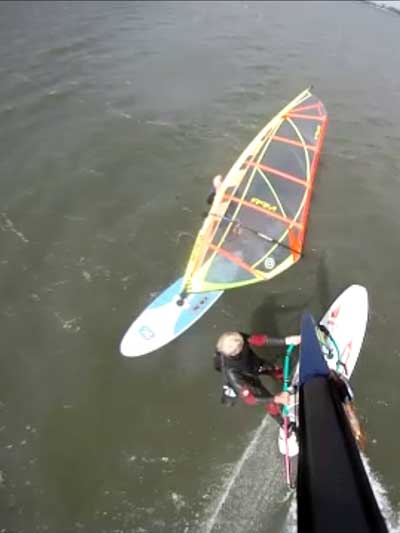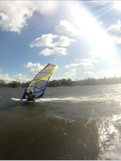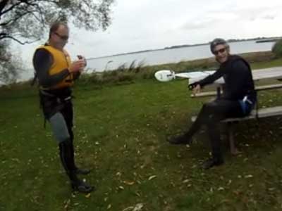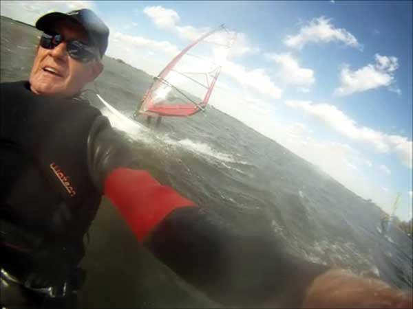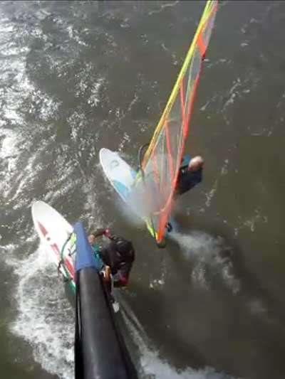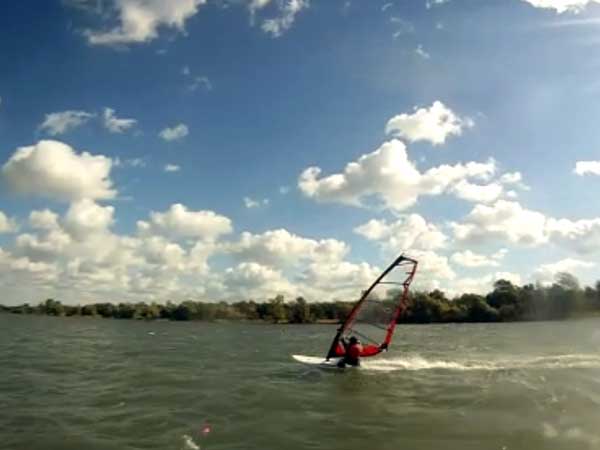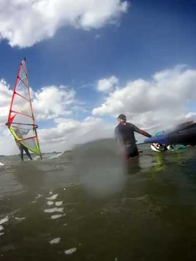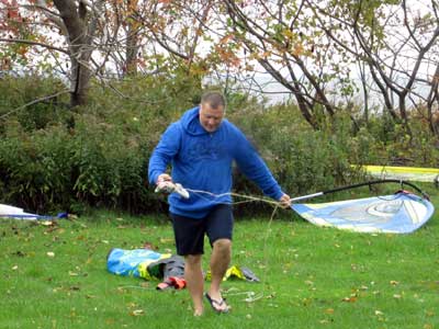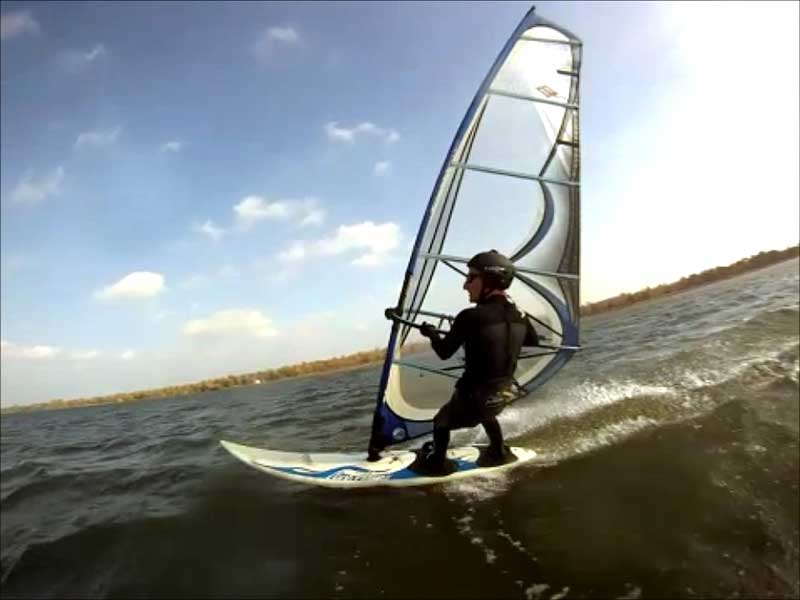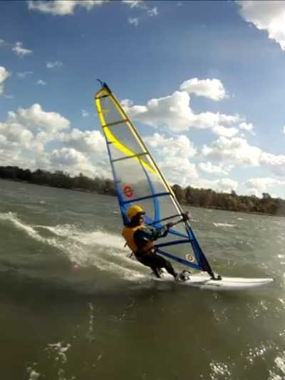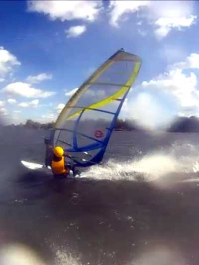 The Skydog Report Wednesday October 8, 2014 and what a great day it was. I arrived at 9:30 am and was the first there. The wind looked like 17 mph from the west so I set up my 5.0 Ezzy and soon Don Ferguson and Brooke Murray arrived and they set up their 4.5 sails. I was getting the GoPro mounted as they went onto the water and they seemed to be doing well. Les drove in around 11 am and set up his 4.2 and Les and I got on the water around 11:30 and I chased them all trying to get some decent video. The wind was up and down with some wind up to 35 mph. I finally had to come in and switch down to my 4.2 and this time mounted the camera on top of the mast. I had it mounted earlier on the boom hoping to get others sailing close beside me. When I got out on the 4.2 it was just great although sometimes the wind would lull and I would sink but most of the time I was flying across the water with Don. Brooke and Les coming close a few times. Around 2 pm. Chris VanBoxmeer and Ken Addeman show up and get out with us. The wind was strong at 3 pm when I finally had enough and Don, Brooke and myself broke down and Les, Chris and Ken sailed on until 4:30. Unfortunately Ken ran over a big chunk of cement breaking his fin. we will need to mark that cement next spring. This has been one of the best days that we have had in a long time and the end of a five day windy stretch. |