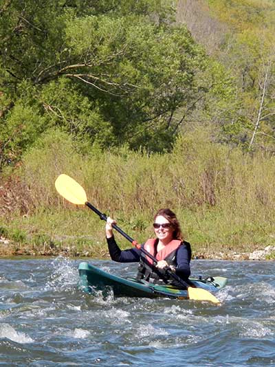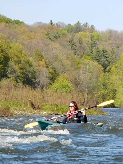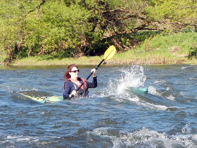 The Skydog Report Tuesday May 16, 2017 We had rain in the morning and by noon the sun was shinning so Maureen and I took Sheri for a trip from Springbank Dam to Kilworth bridge. The water level was about 18 inches higher that summer levels making the rapids a lot of fun. Sheri was looking for a flat water trip but she enjoyed our trip with some calm water and some good rapids. |