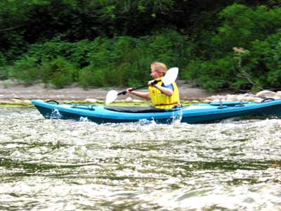 Julia ordered her new AquaFusion Breeze with a special turquoise color and we received it four days later and were on the water for her first run the next day and she enjoyed it immensely. Although Julia had not experienced rapids before, she did extremely well and came out with a big smile. Our first trip with Julia was about five miles long and took us two hours.