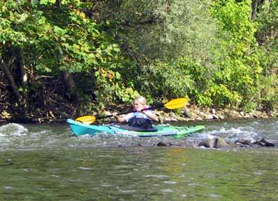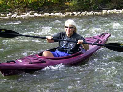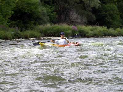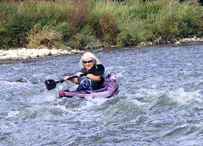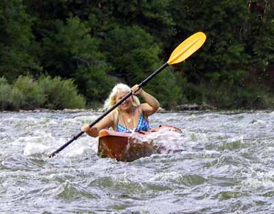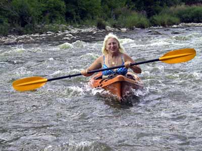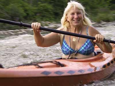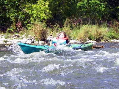 Maureen Takes Mike's Kayak Through Rapids |