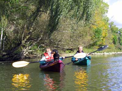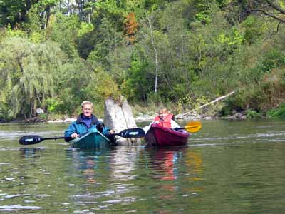 Maureen, Jane and Bob take the six mile trip from Springbank dam to the Killworth Bridge and enjoy the rapids near the bridge.