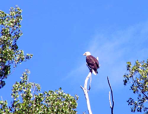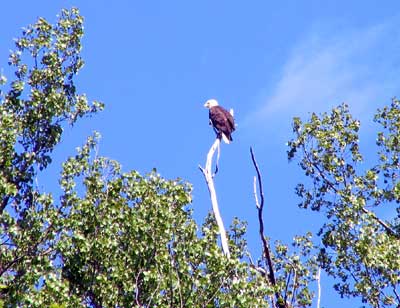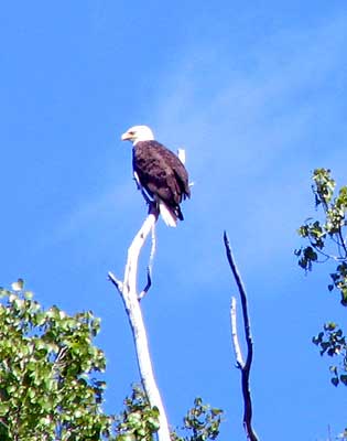 This past few days Thursday, Friday and Saturday we were at Port Franks and toured the Ausable where it runs through the Pinery Provincial park and it was really nice. Thursday we paddled from close to Grand Bend to our friend's cottage near Port Franks which was 7.2 miles and it took us 3 hours. Lots of good scenery and clean water and wildlife. Friday we had our friends Eric and Mary with us and we saw up close a large beaver that did not seam to be afraid of us and Maureen took many photos which I will post soon on my website. Saturday Maureen and I went back to an area on the river where we saw a large Bald Eagle on Thursday and this time we were prepared with our camera and we were able to get some shots but did not get as close as we did on Thursday when we did not have the camera. We will be trying to capture that Eagle again next time we visit Port Franks and it is spectacular and stands about three feet tall.