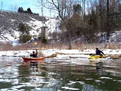Following are photos of our first day of 2005 except for Mike who paddled in Pennsylvania the previous weekend in some wild rapids.