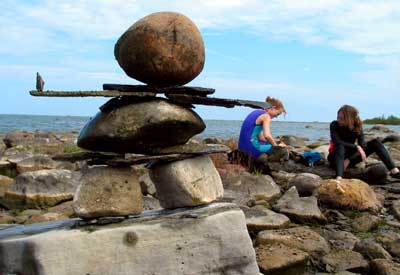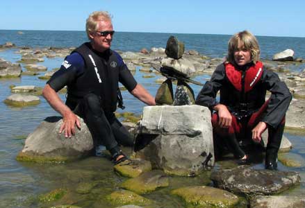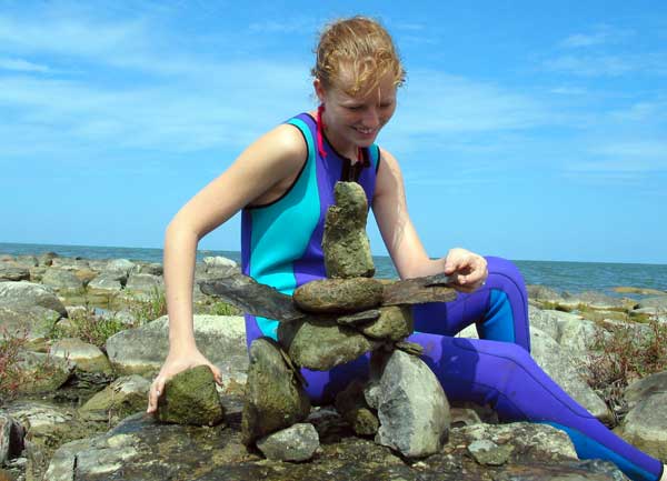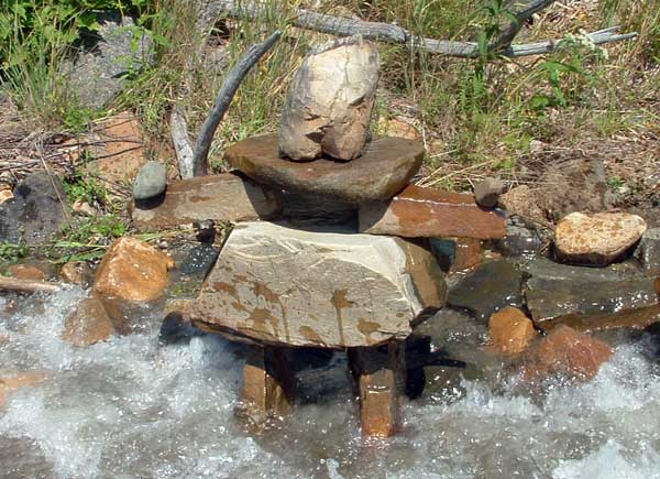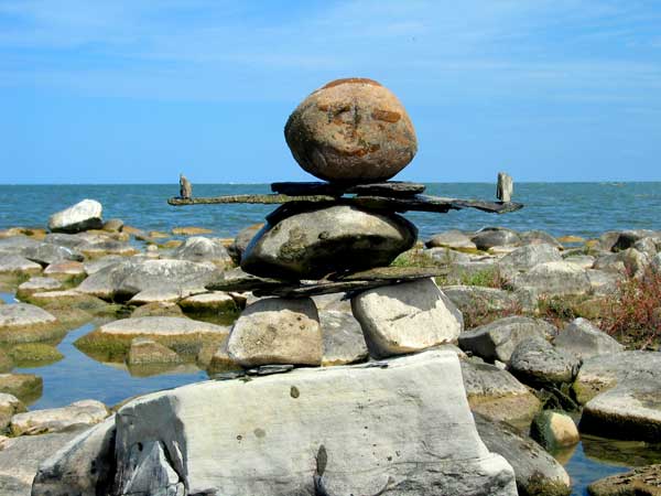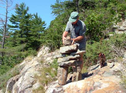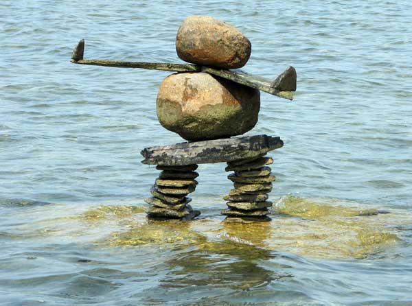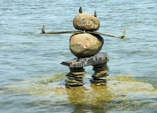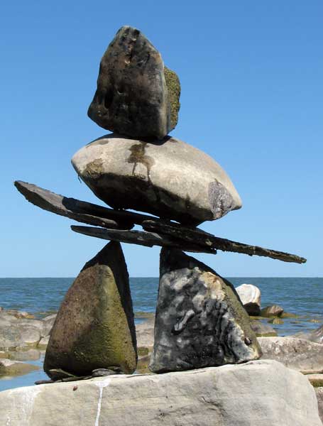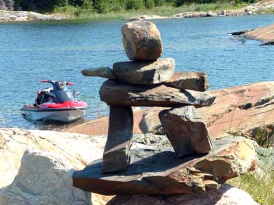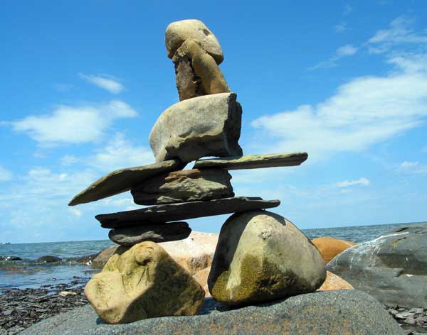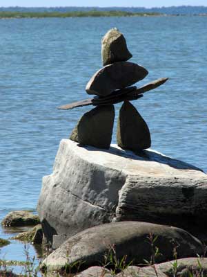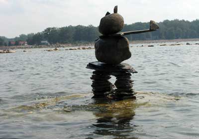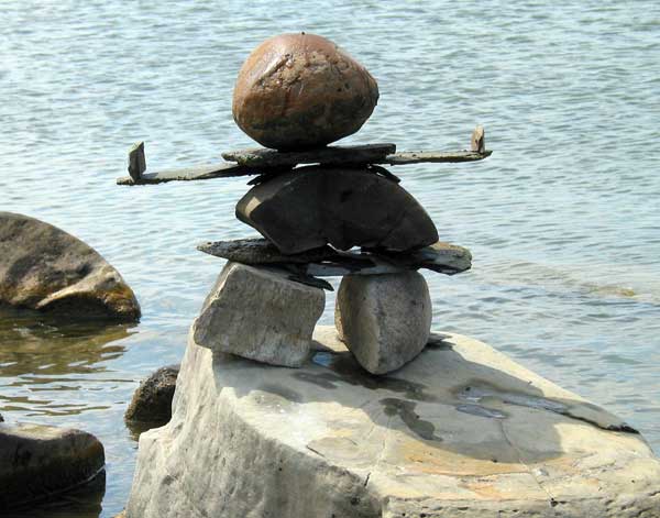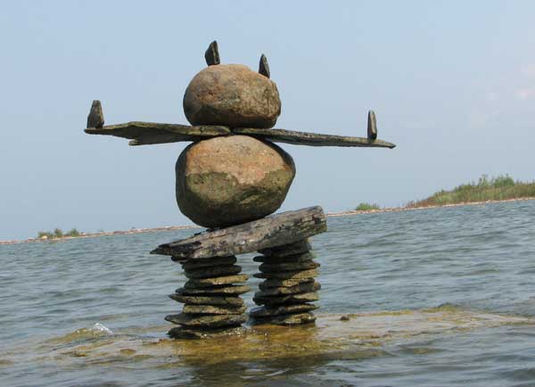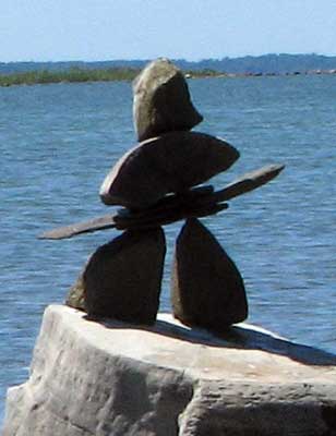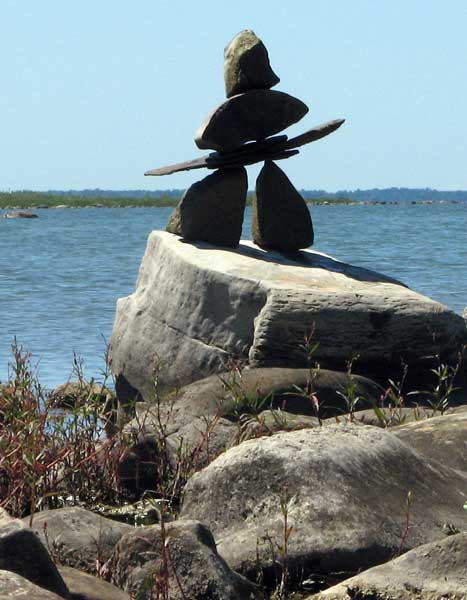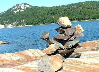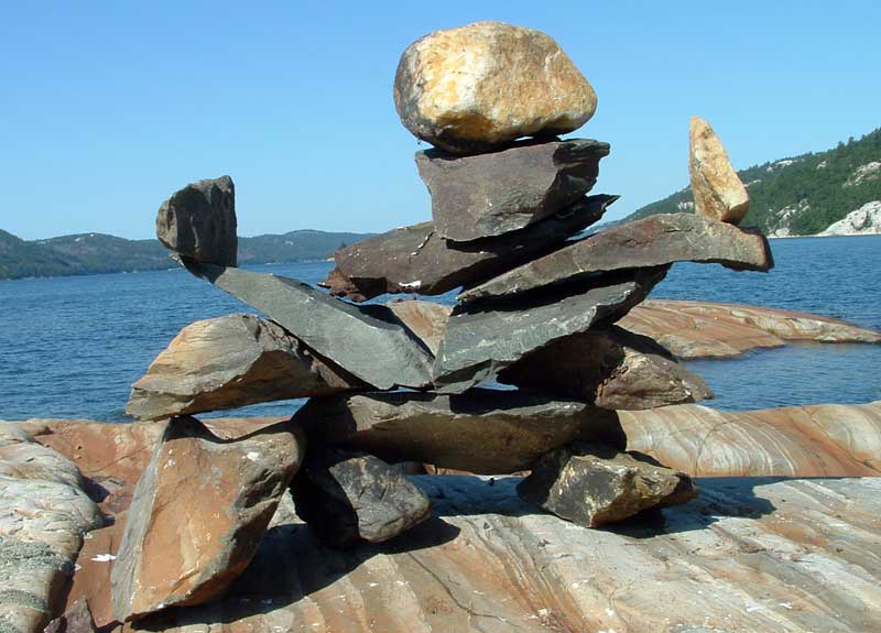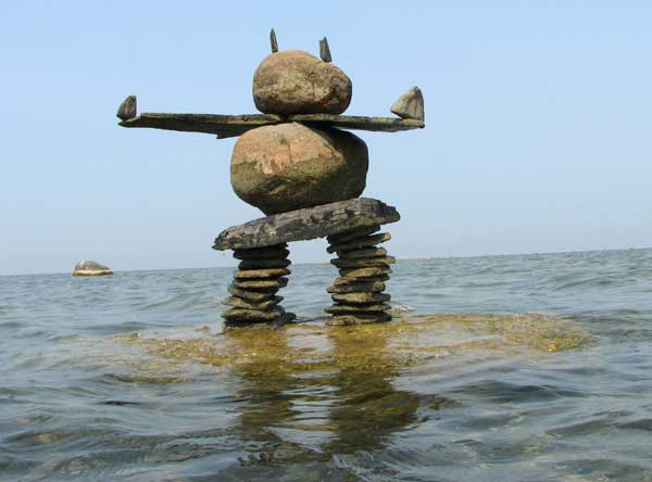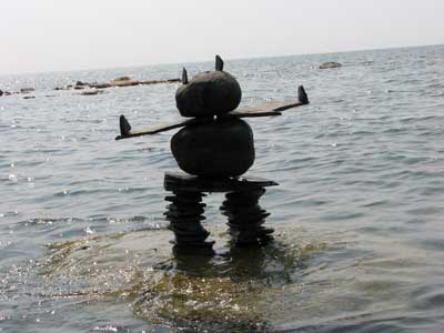 In our travels we have come across many stone structures depicting figures of humans pointing the way to paths and other points of interest so now as we travel we sometimes take time to build figures of our own liking. In 2006 we traveled to Manitoulin Island and along the North Channel and then to Sault Ste Marie leaving our mark as we go only to realize that these stone structures will likely be toppled by water, wind or by other humans. Usually while we visit Kettle Point, Ontario, Canada, I will spend time collecting interesting rocks and assembling them into my own figures. I find that this is a great pastime which our family and friends also enjoy. We only do this as a hobby and do hope that you will enjoy our photos. If you have any comments or would like share a photo of your sightings, Please send to info@skydogsports.com