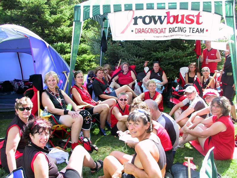 The Rowbust Dragonboat team is formed of a group of ladies who have endured the agony of breast cancer and together they participate along with many other groups in racing their large craft at many events in Ontario.